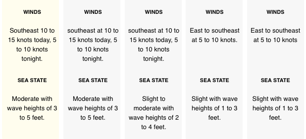 Winds: Today: SE 10-20 mph Tonight: SE 10-20 mph