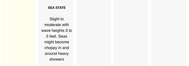 Winds: Today: NE 5-10 mph Tonight: NNE 5-10 mph