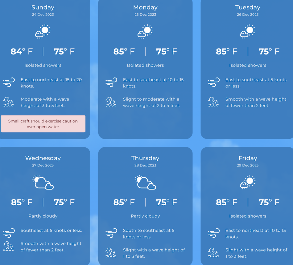 IMPORTANT NOTICEThe times reflected in the tidal table for Grand Cayman are predictions valid as references for sports fishing in areas near the coast of Grand Cayman. THEY ARE NOT SUITABLE FOR NAVIGATION. Remember that to practice any activity at sea like diving, windsurfing and fishing from a boat or underwater fishing should always be consulted with the official tide tables of the port of Grand Cayman.