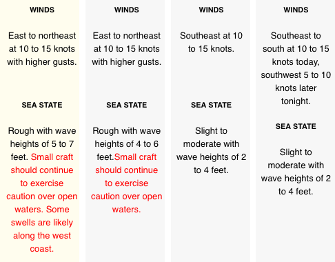 Winds: Today: ENE 15-25 mph Tonight: ENE 10-20 mph