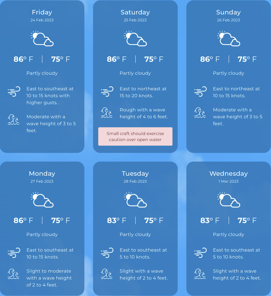 IMPORTANT NOTICEThe times reflected in the tidal table for Grand Cayman are predictions valid as references for sports fishing in areas near the coast of Grand Cayman. THEY ARE NOT SUITABLE FOR NAVIGATION. Remember that to practice any activity at sea like diving, windsurfing and fishing from a boat or underwater fishing should always be consulted with the official tide tables of the port of Grand Cayman.