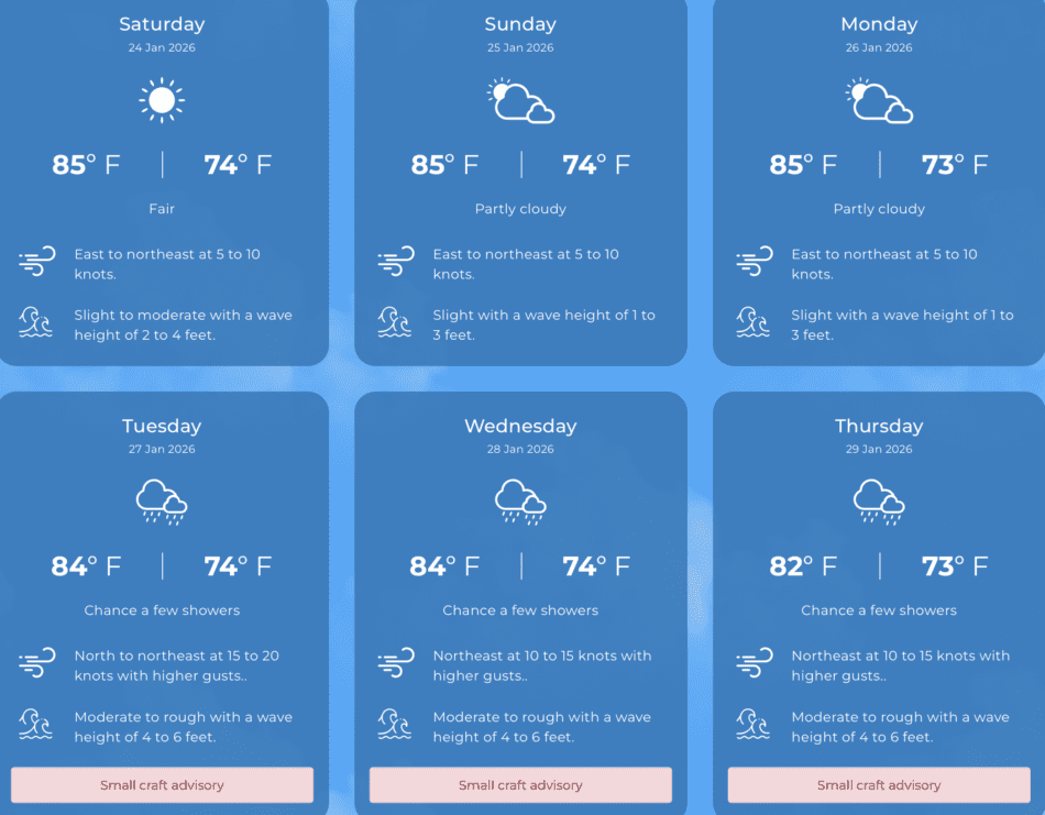 A high-pressure system will continue to dominate the weather pattern across the northwestern Caribbean, allowing for mostly fair conditions across the Cayman area today, with a low chance of few sporadic showers. In addition, gentle breeze are expected, gradually becoming moderate by tomorrow.