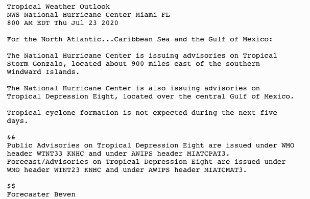 | Tropical Weather Outlook (en Español*) 800 AM EDT Thu Jul 23 2020 |
