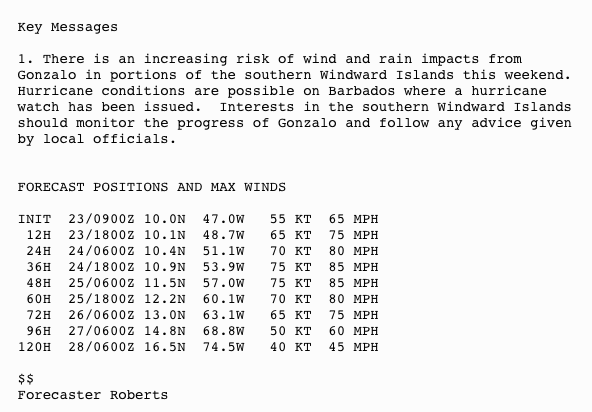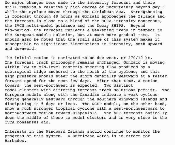 GONZALO CONTINUES WESTWARD… …HURRICANE WATCH ISSUED FOR ST. VINCENT AND THE GRENADINES