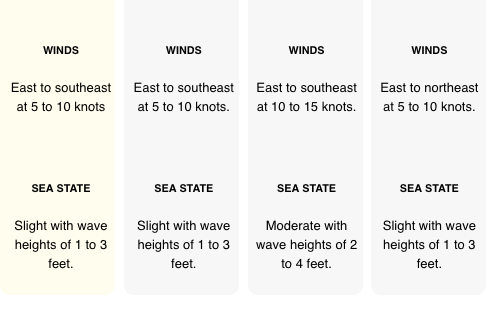 Winds: Today:ESE 10-15 mph Tonight: SE 5-10 mph