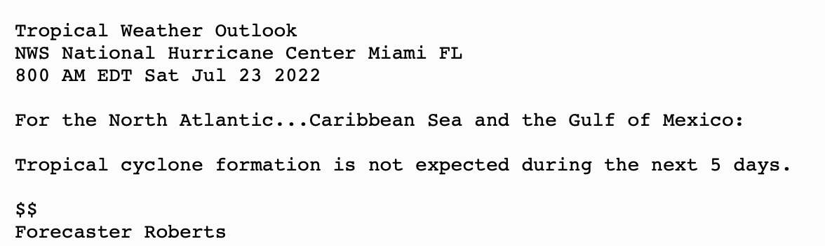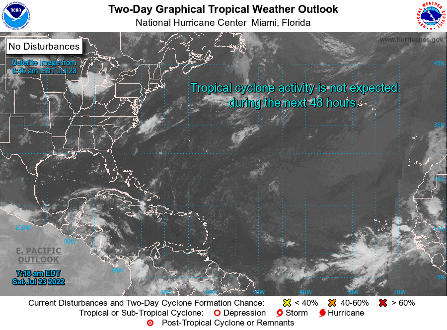 | Tropical Weather Outlook (en Español*) 800 AM EDT Sat July 23 2022 1205 UTC Sat July 23 2022 | |