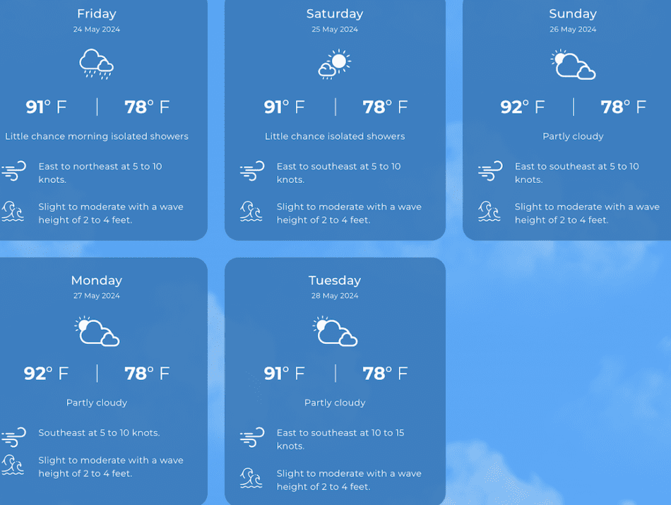 IMPORTANT NOTICEThe times reflected in the tidal table for Grand Cayman are predictions valid as references for sports fishing in areas near the coast of Grand Cayman. THEY ARE NOT SUITABLE FOR NAVIGATION. Remember that to practice any activity at sea like diving, windsurfing and fishing from a boat or underwater fishing should always be consulted with the official tide tables of the port of
