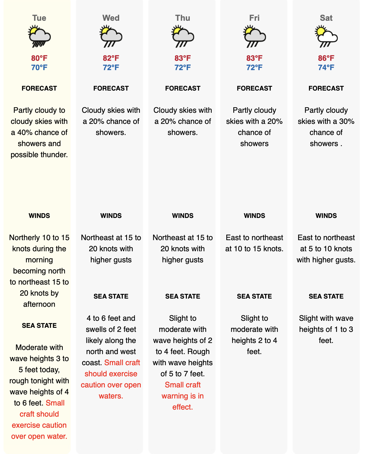 Temperature: Expected Today: Low: 74°F High: 87°F Yesterday: Low: 69.3°F High: 87.5°F
