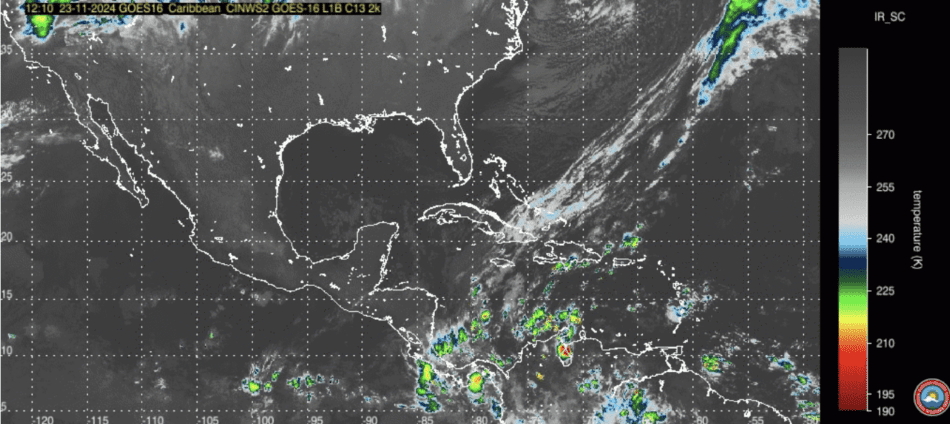 Cloudy skies along with isolated showers are expected across the Cayman area for the next 24 hours as a stationary front east of the Cayman area retrogresses*. Radar images show no showers in and around the Cayman area.