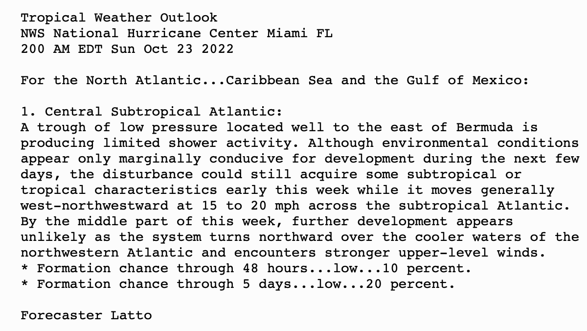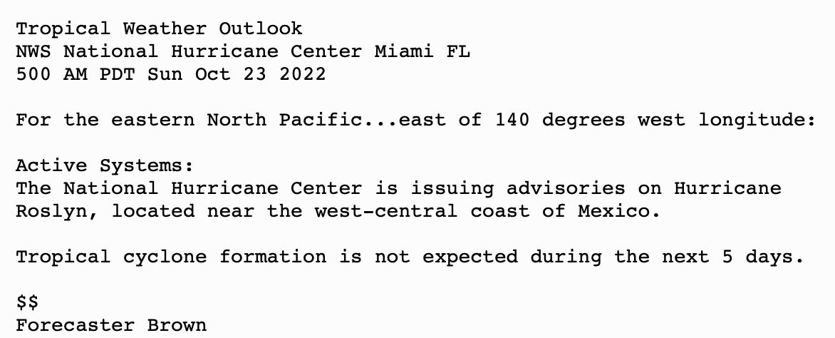 | Tropical Weather Outlook 500 AM PDT Sun Oct 23 2022 1005 UTC Sun Oct 23 2022 | |