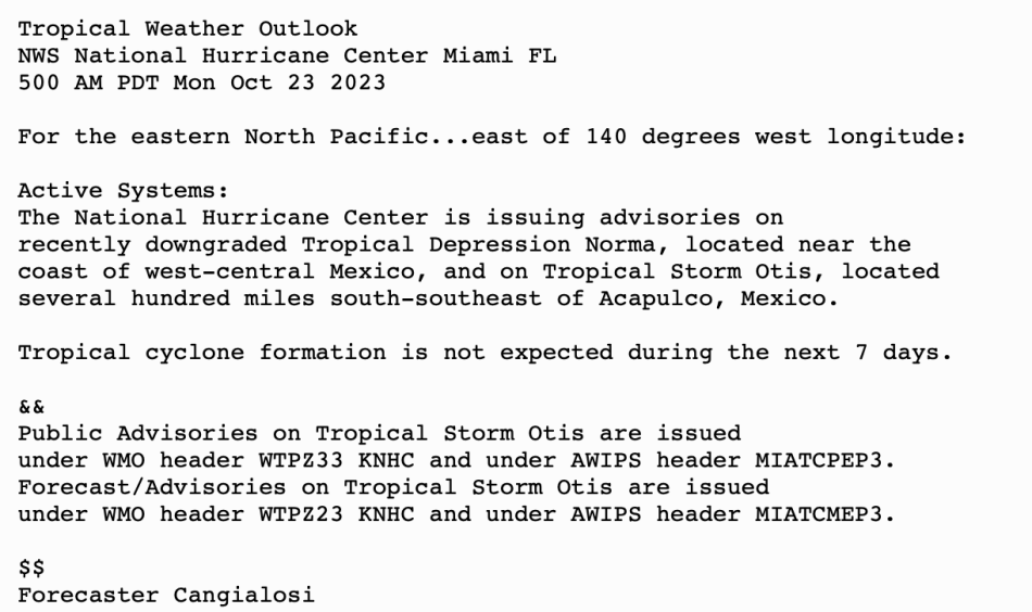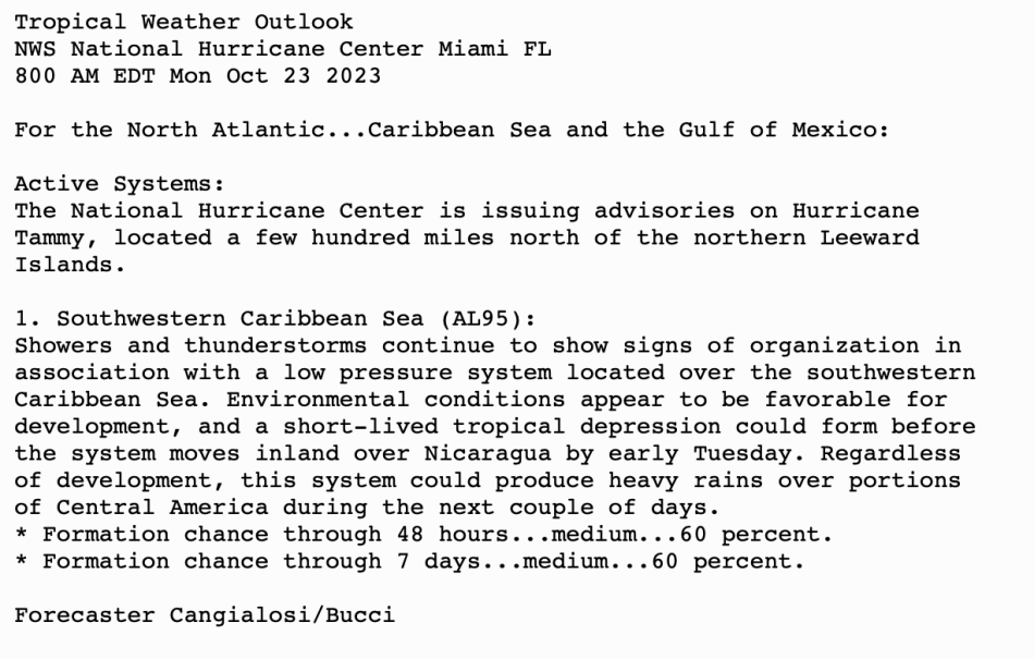 | Tropical Weather Outlook (en Español*) 800 AM EDT Mon 23 Oct 2023 | |