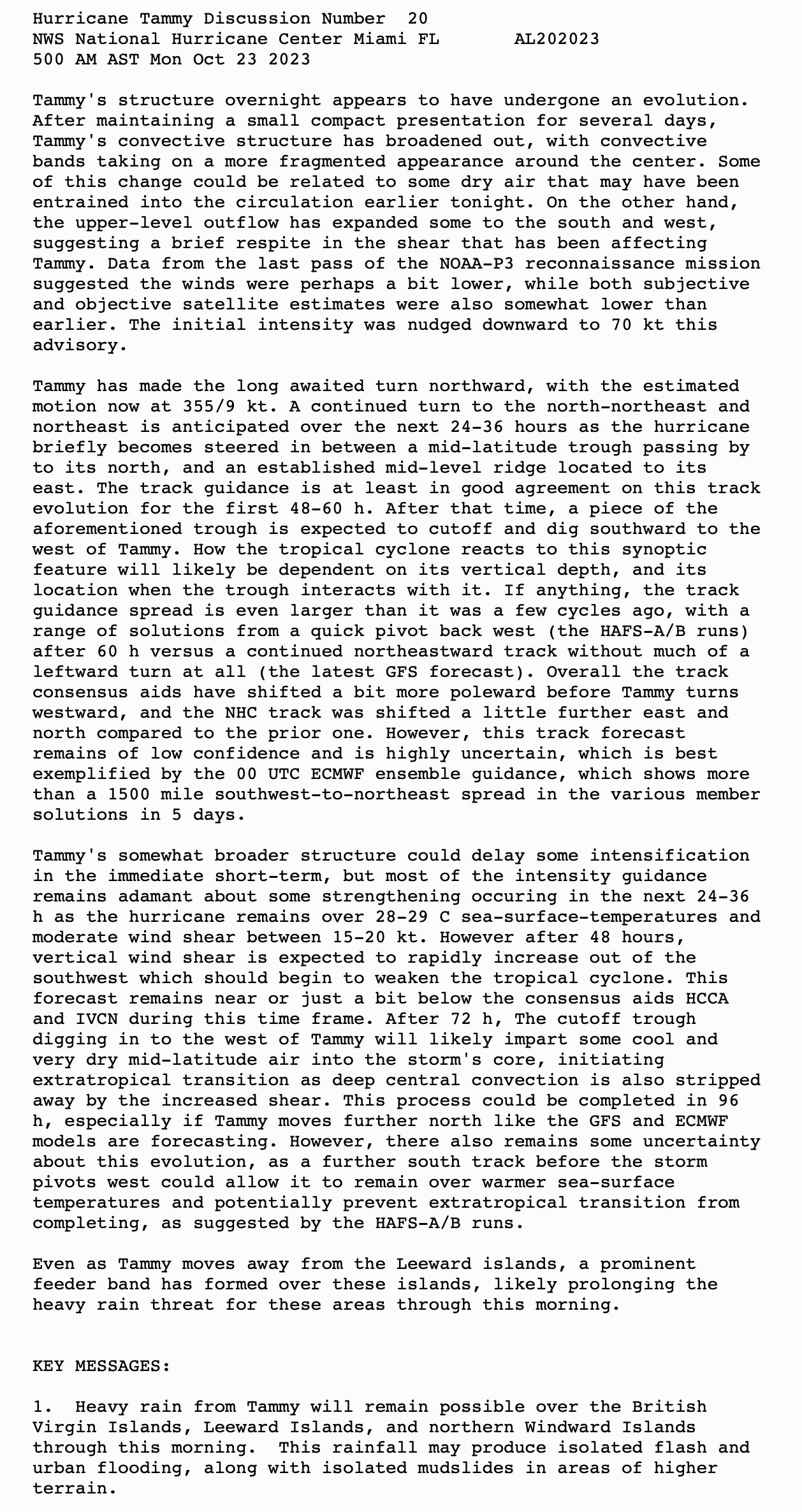 TAMMY TURNING NORTHWARD… …HEAVY RAINS STILL OCCURING OVER PARTS OF THE LEEWARD ISLANDS
