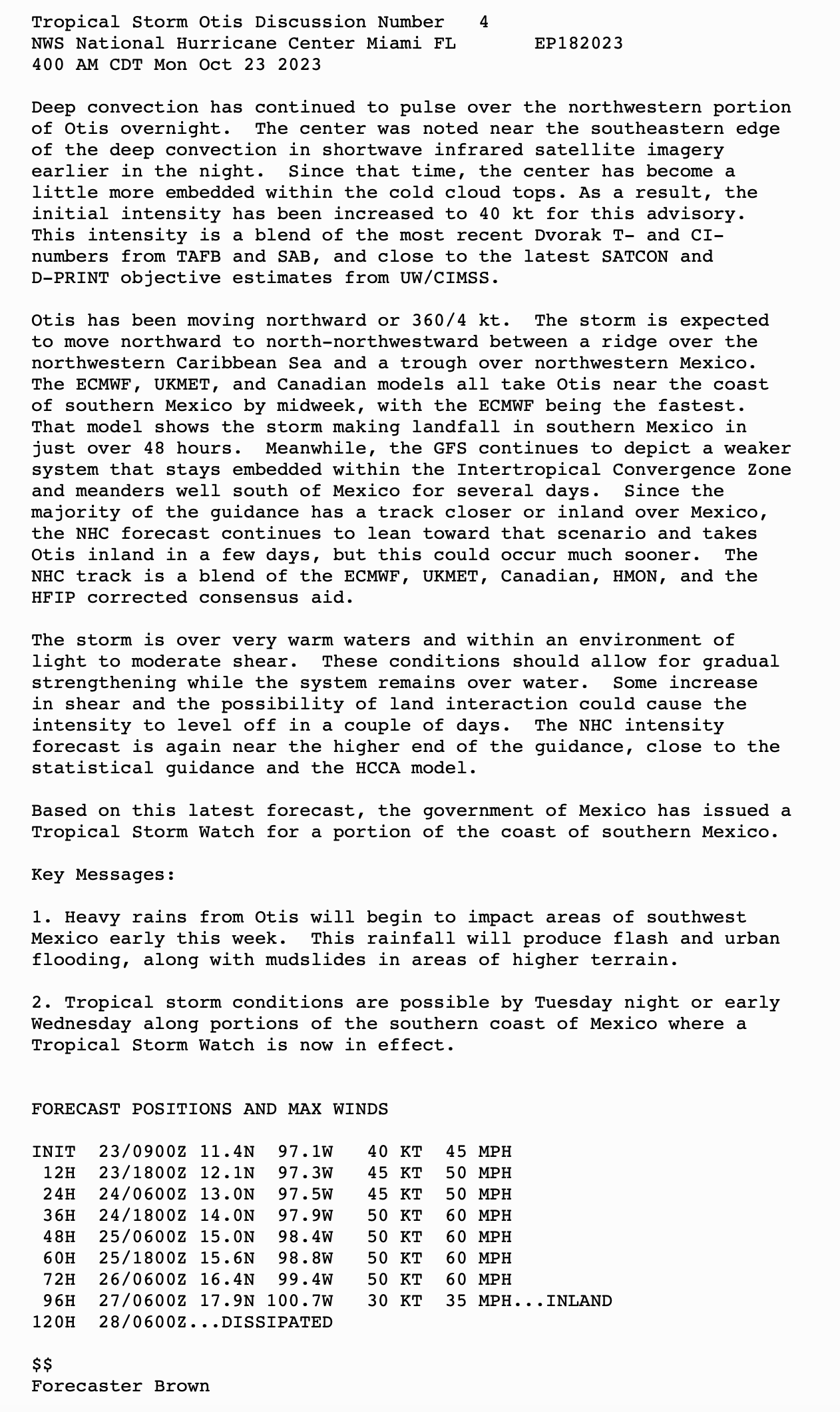 OTIS FORECAST TO APPROACH THE SOUTHERN COAST OF MEXICO BY MIDWEEK… …HEAVY RAINFALL EXPECTED TO BE THE MAIN THREAT
