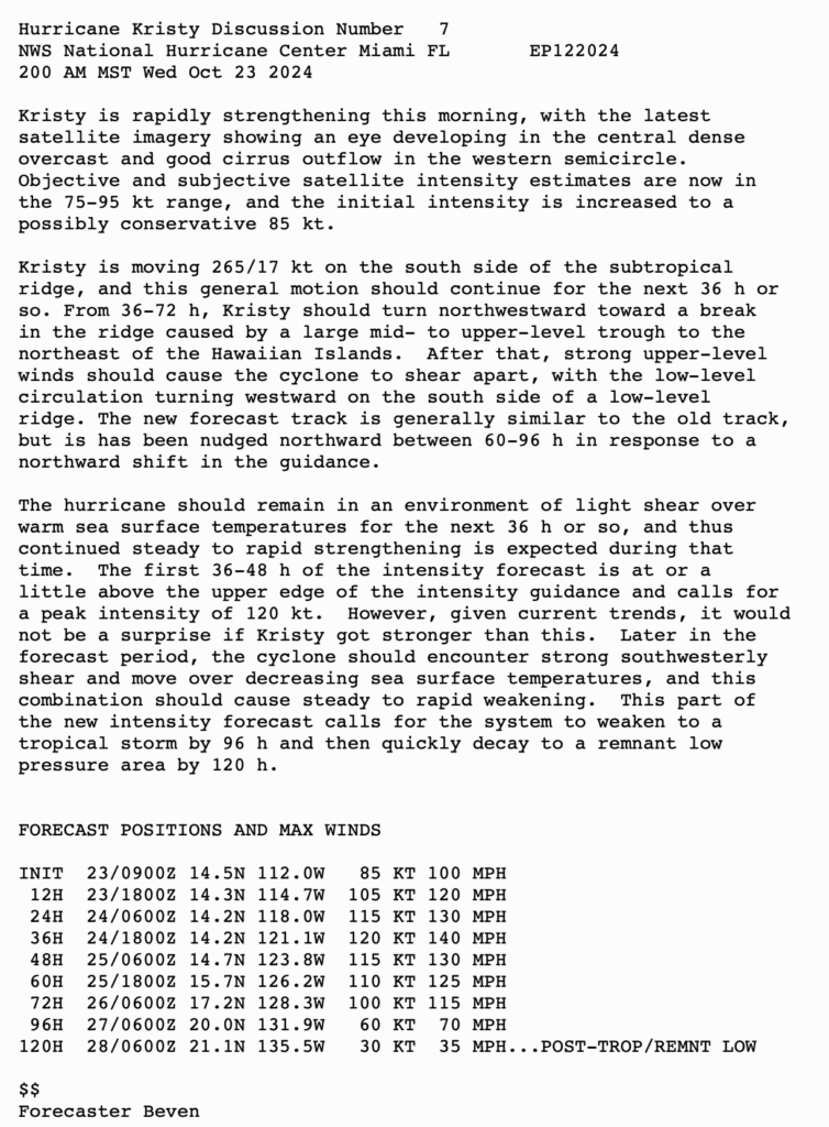 HURRICANE KRISTY QUICKLY INTENSIFYING
