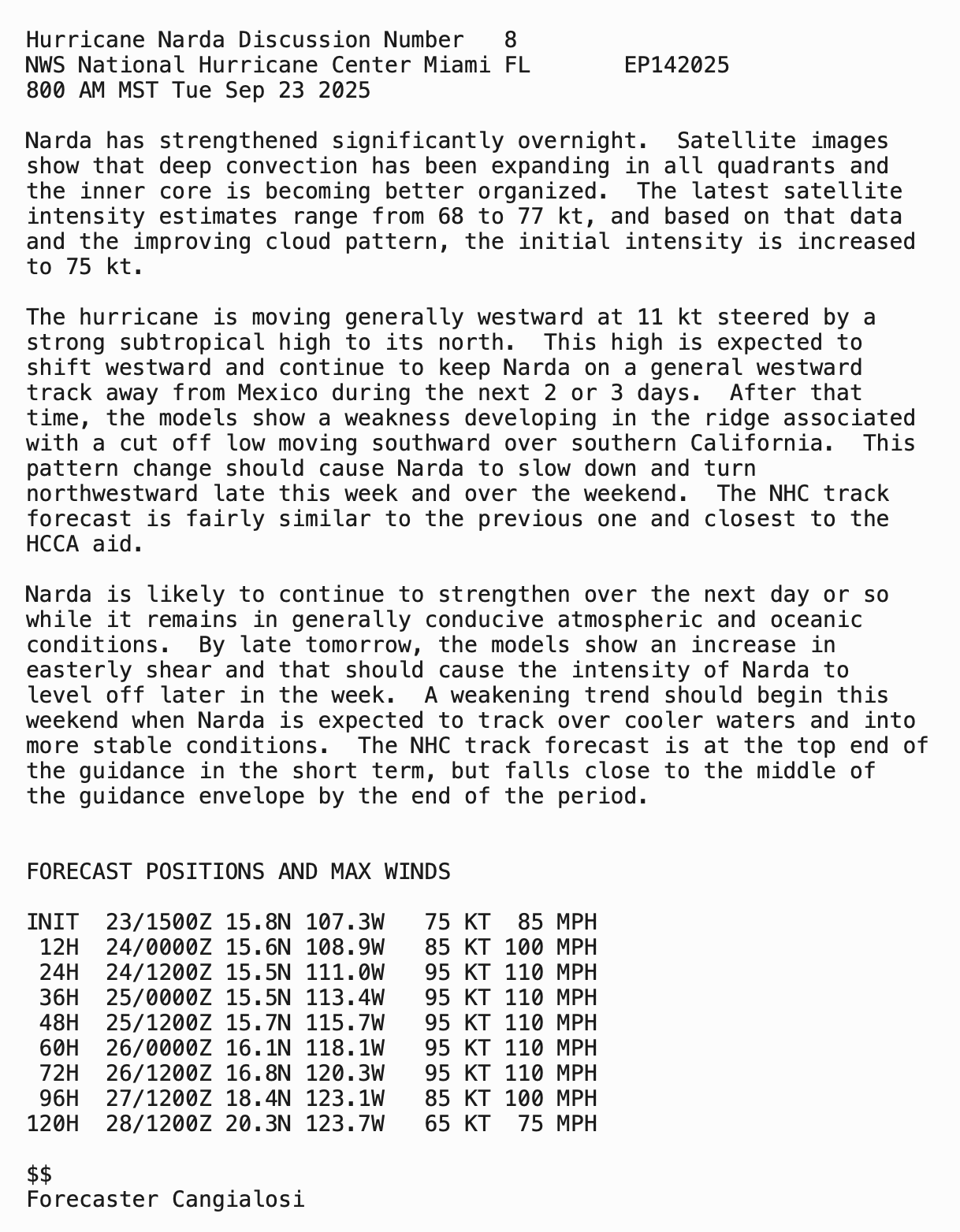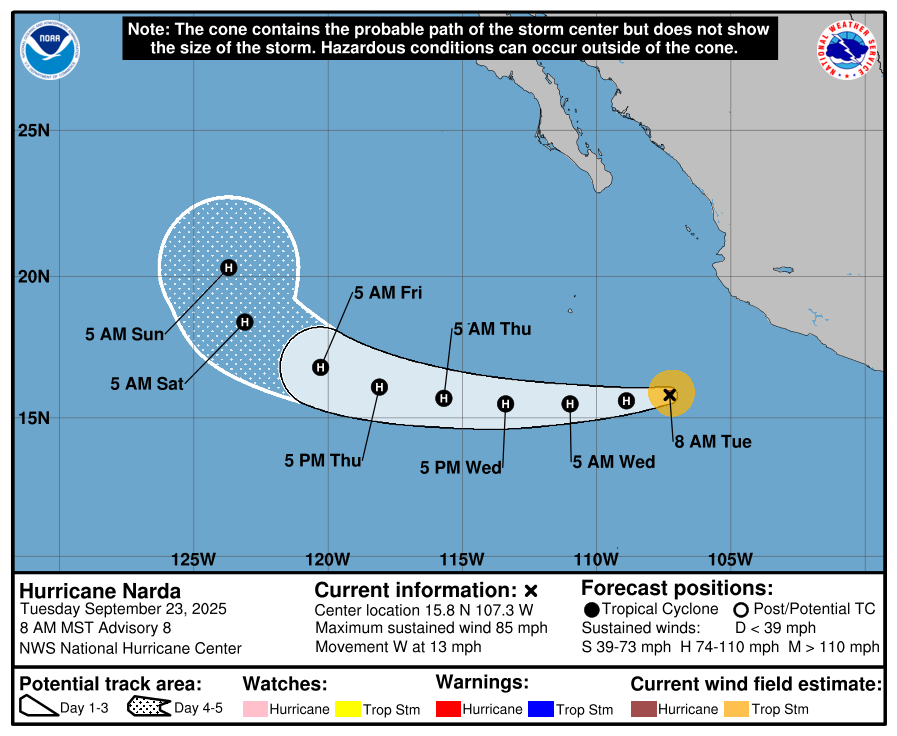 NARDA BECOMES A HURRICANE… …ADDITIONAL STRENGTHENING EXPECTED