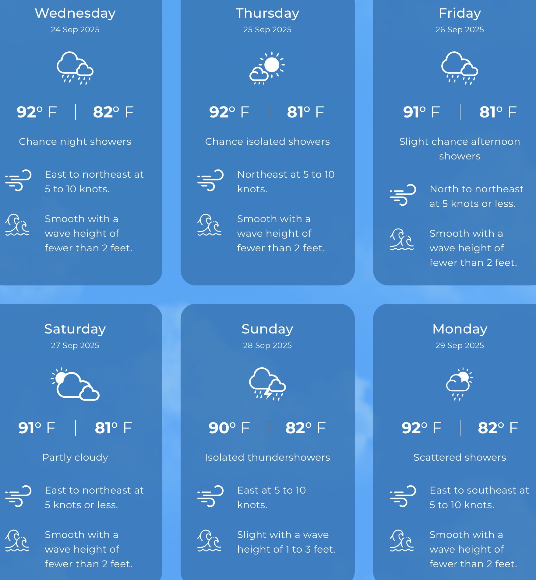 Expected temperatures: 81°F to 92°F. Yesterday: H 91.9°F L 81.5°F