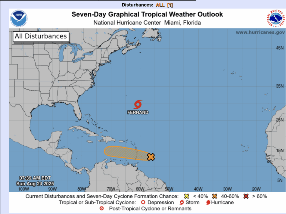 | Tropical Weather Outlook 800 AM EDT Sun 24 Aug 2025 1205 UTC Sun 24 Aug 2025 | |