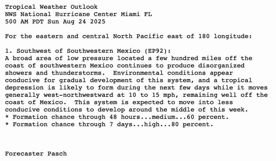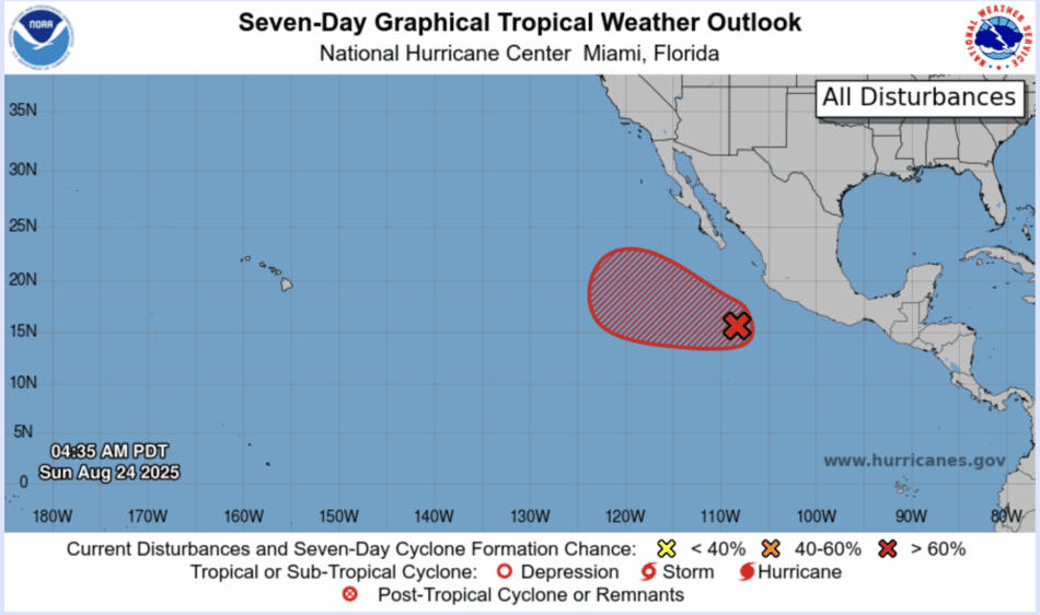 | Tropical Weather Outlook 500 AM PDT Sun 24 Aug 2025 1005 UTC Sun 24 Aug 2025 | |