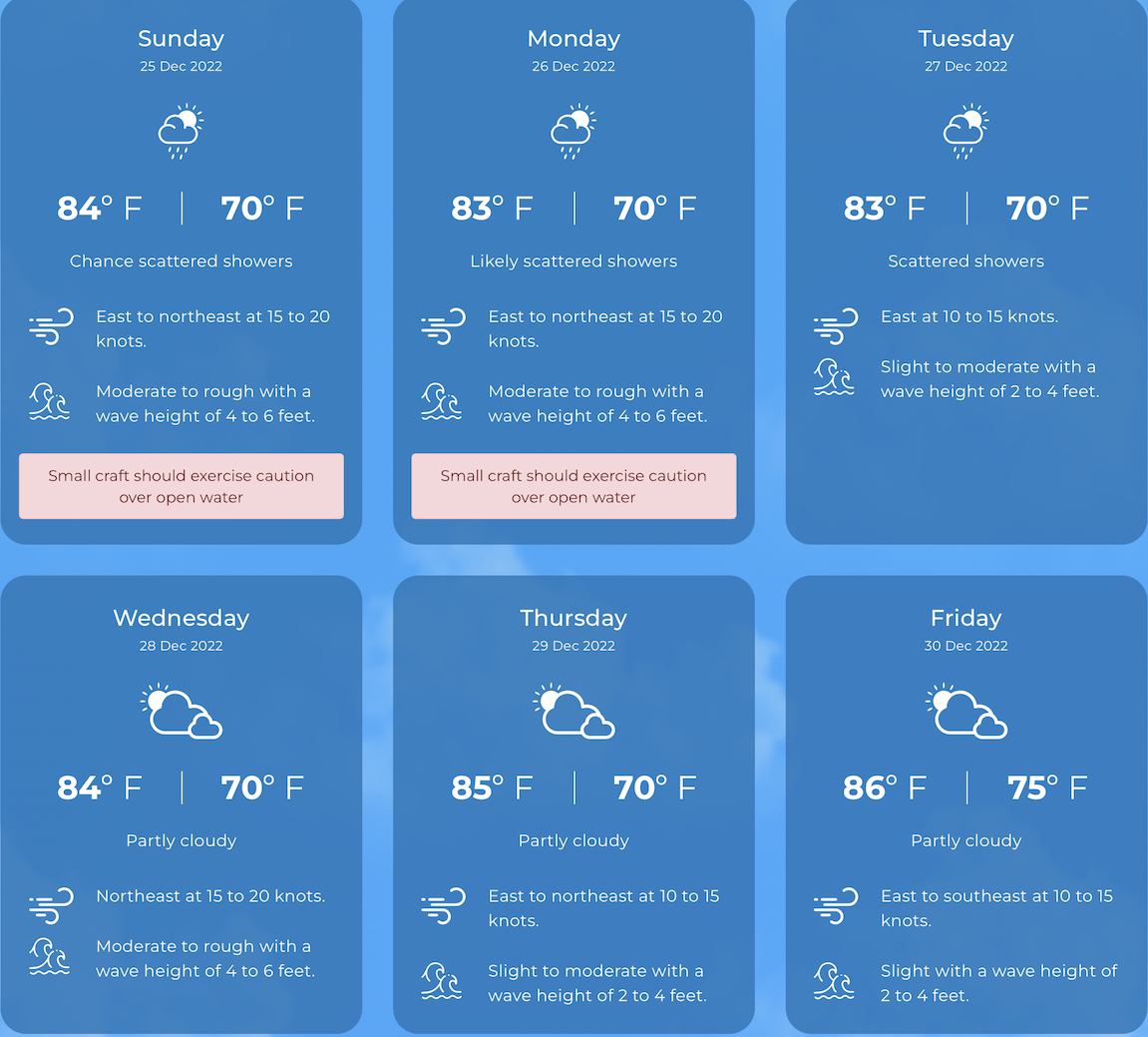 Sea: Slight to moderate with a wave height of 2 to 4 feet.