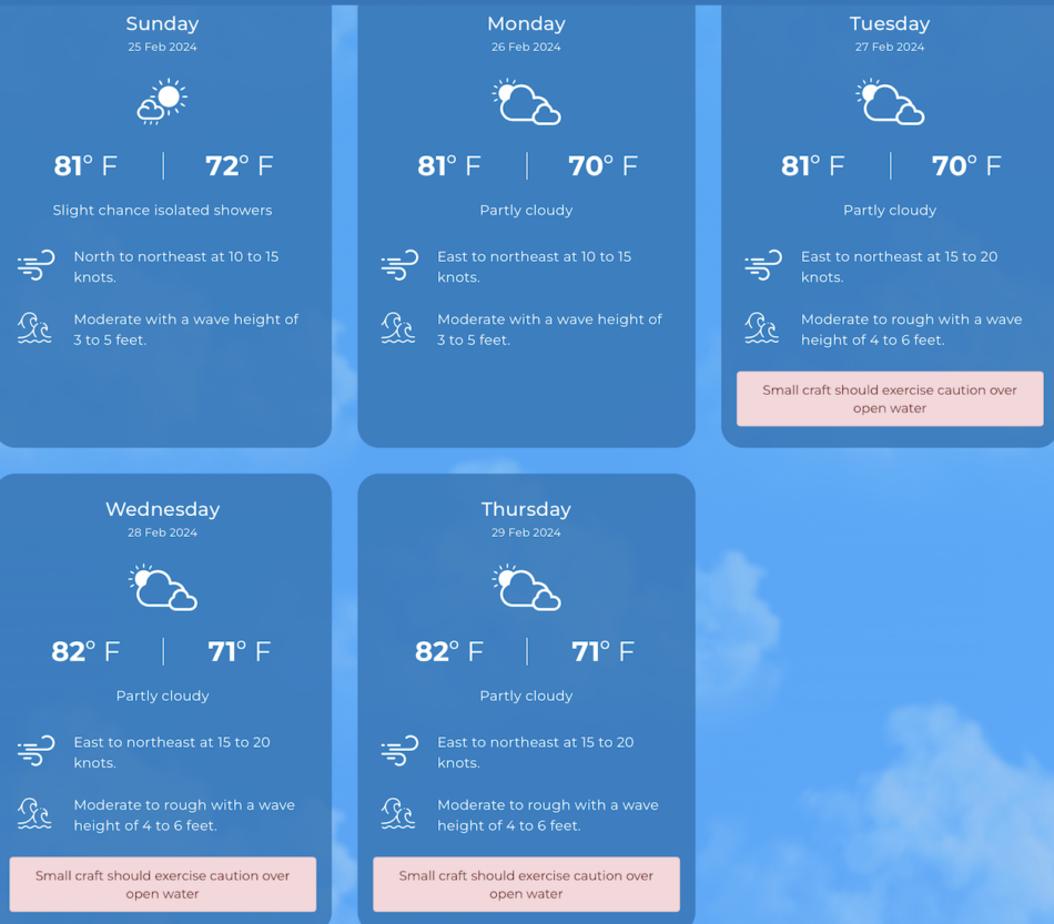 Expected temperatures: 70°F to 83°F. Yesterday: H 81.3°F L 71.7°F
