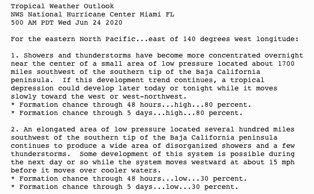 | Tropical Weather Outlook 500 AM PDT Wed Jun 24 2020 |
