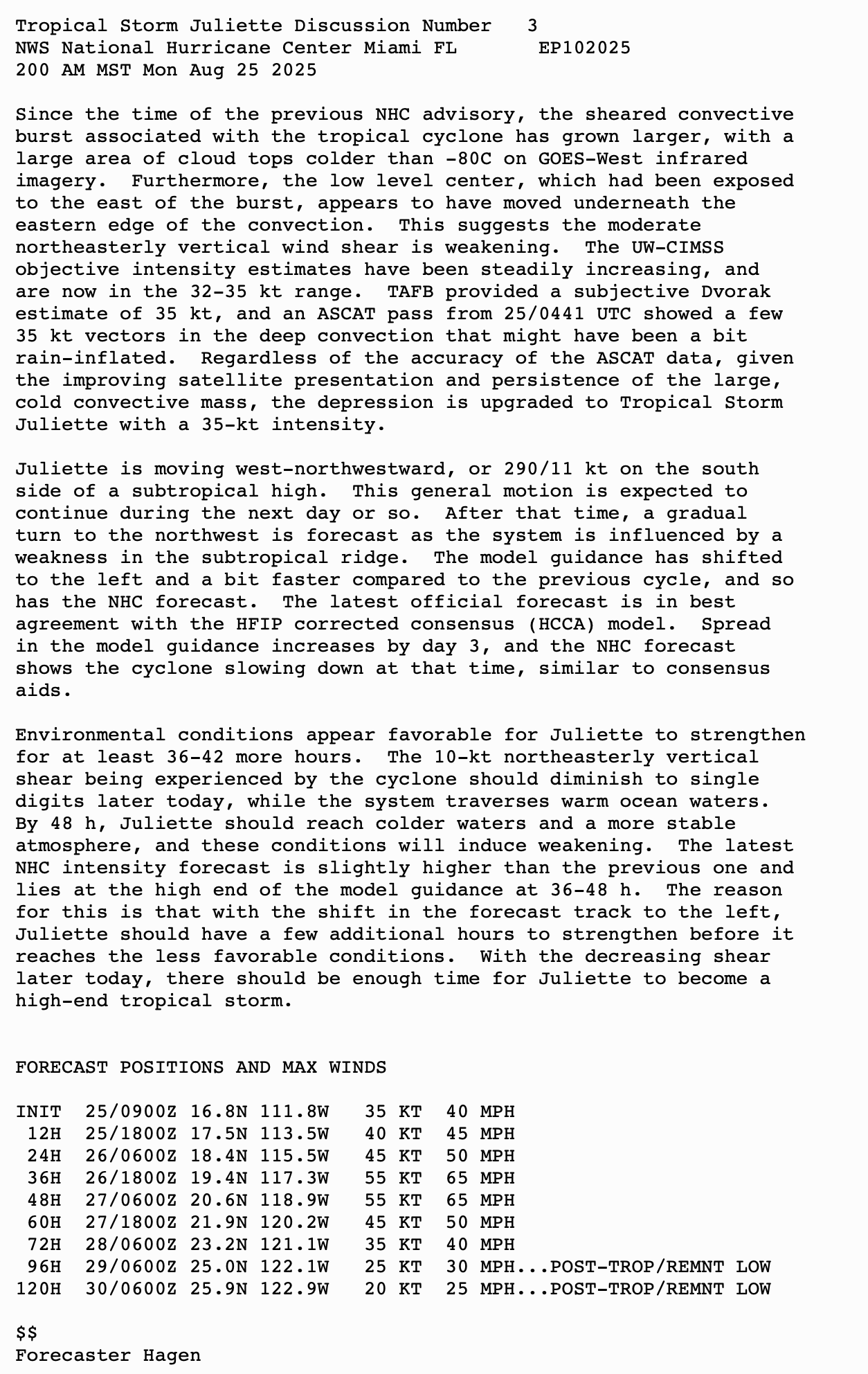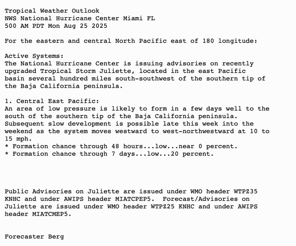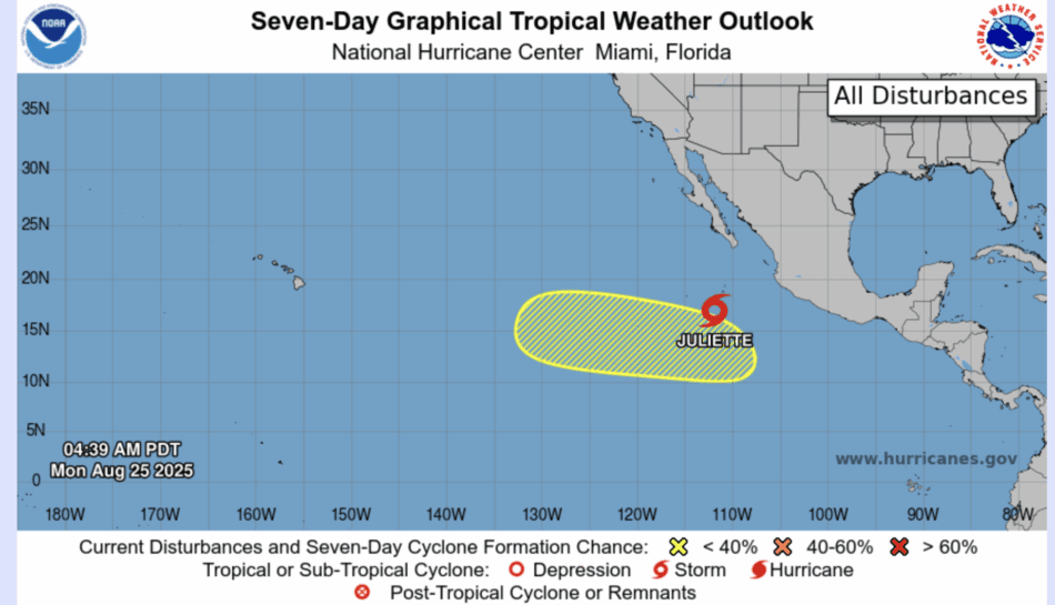 | Tropical Weather Outlook 500 AM PDT Mon 25 Aug 2025 1005 UTC Mon 25 Aug 2025 | |