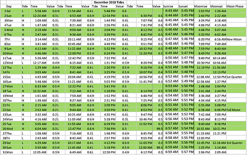 TIDES, SUNRISE, SUNSET, MOON RISE, MOON SET AND MOON PHASE