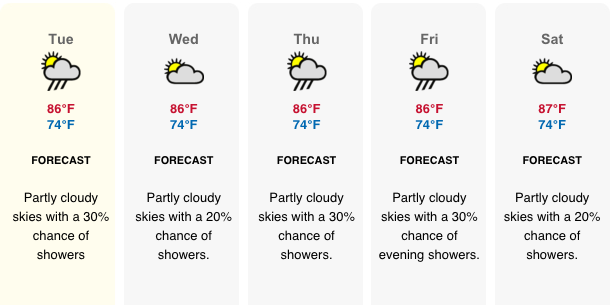 UV: 7.2 HIGH (UP from yesterday) Temperature: Today’s current temperature – See weather forecast top right of website. Yesterday: H 83.0°F L 75.6°F