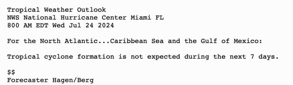| Tropical Weather Outlook Text | Tropical Weather Discussion |