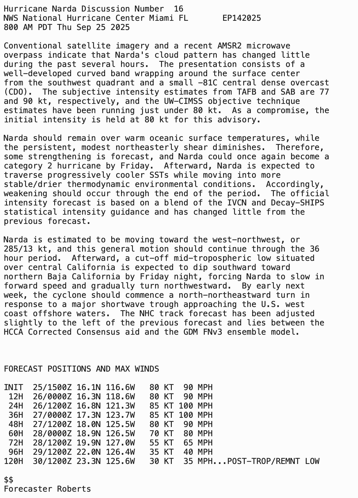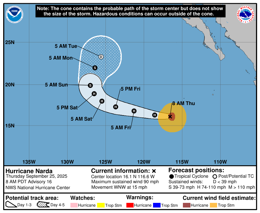 NARDA COULD RESTRENGTHEN TO A CATEGORY 2 HURRICANE SOON