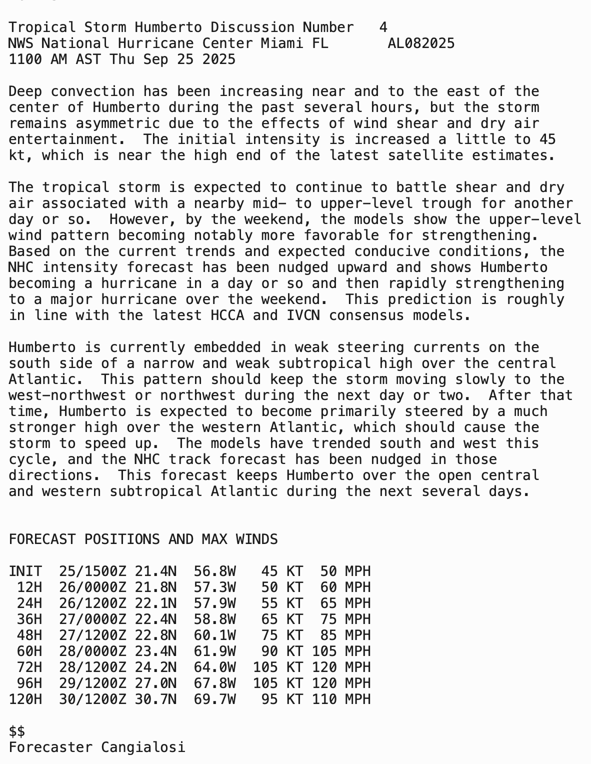 .HUMBERTO GAINING STRENGTH… …EXPECTED TO BECOME A HURRICANE IN A DAY OR SO OVER THE CENTRAL ATLANTIC