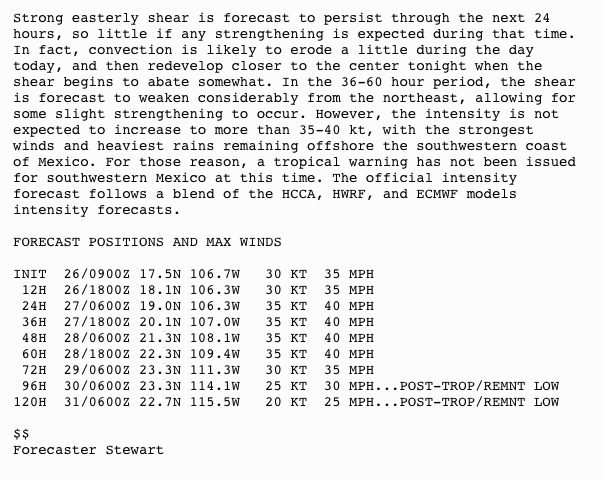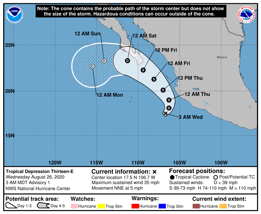 NEW TROPICAL DEPRESSION FORMS OFFSHORE THE COAST OF SOUTHWESTERN MEXICO