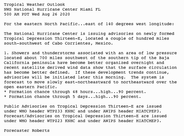 | Tropical Weather Outlook (en Español*) 800 AM EDT Wed Aug 26 2020 |