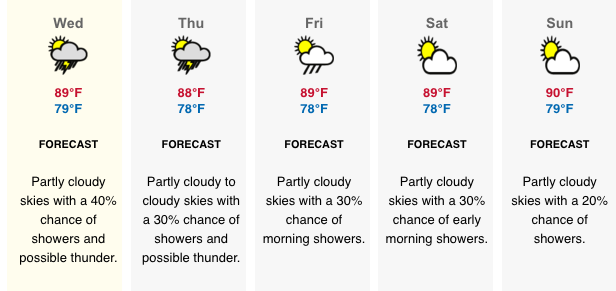 Temperature: Today’s expected temperatures – 72° to 93°F. Yesterday: H 93.1°F L 82.7°F