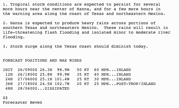 HANNA PRODUCING HEAVY RAIN AND DANGEROUS FLASH FLOODING OVER FAR SOUTHEAST TEXAS AND NORTHEAST MEXICO