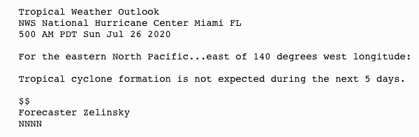 | Tropical Weather Outlook 500 AM PDT Sun Jul 26 2020 |