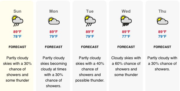 Temperature: Today’s expected temperatures – 76° to 92°F. Yesterday: H 92.5°F L 78.7°F