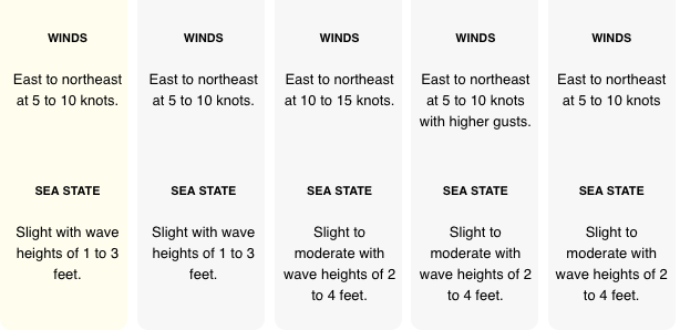 Winds: Today:ESE 15-25 mph Tonight: E10-20 mph