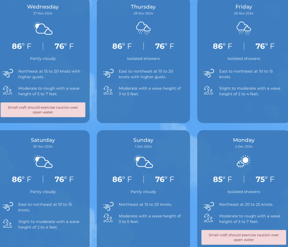 IMPORTANT NOTICE The times reflected in the tidal table for Grand Cayman are predictions valid as references for sports fishing in areas near the coast of Grand Cayman. THEY ARE NOT SUITABLE FOR NAVIGATION. Remember that to practice any activity at sea like diving, windsurfing and fishing from a boat or underwater fishing should always be consulted with the official tide tables of the port of Grand Cayman.