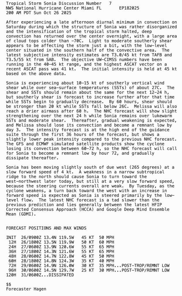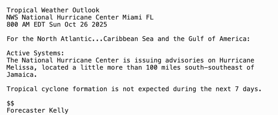 | Tropical Weather Outlook 800 AM EDT Sun 26 Oct 2025 1205 UTC Sun 26 Oct 2025 | |