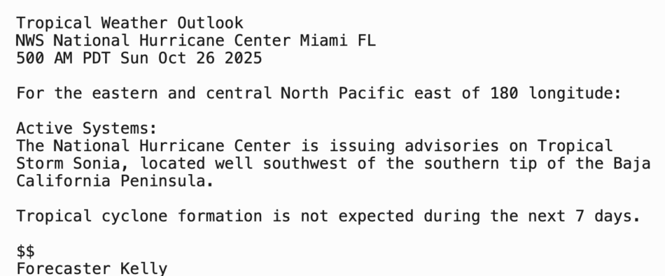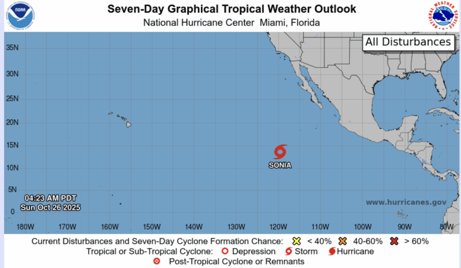 | Tropical Weather Outlook 500 AM PDT Sun 26 Nov 2025 1005 UTC Sun 26 Nov 2025 | |