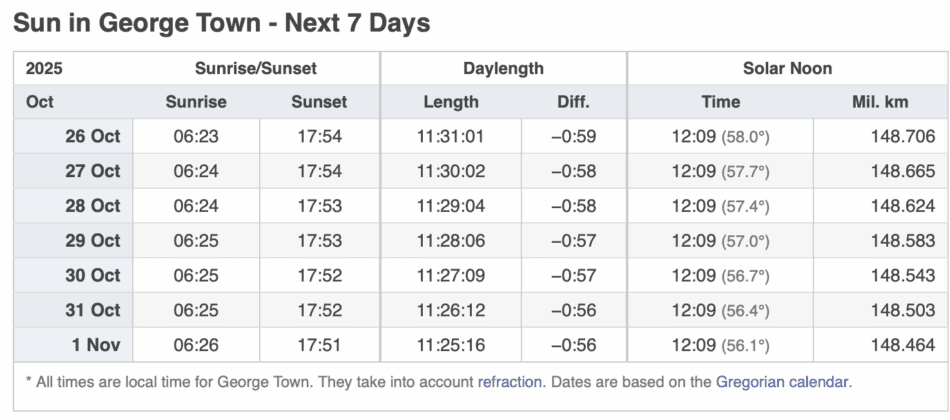 SUN IN GEORGE TOWN – NEXT 7 DAYS