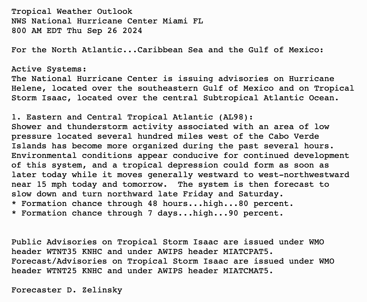 HELENE STRENGTHENING AND EXPECTED TO BRING CATASTROPHIC WINDS AND STORM SURGE TO THE NORTHEASTERN GULF COAST… …PREPARATIONS TO PROTECT LIFE AND PROPERTY SHOULD BE RUSHED TO COMPLETION..