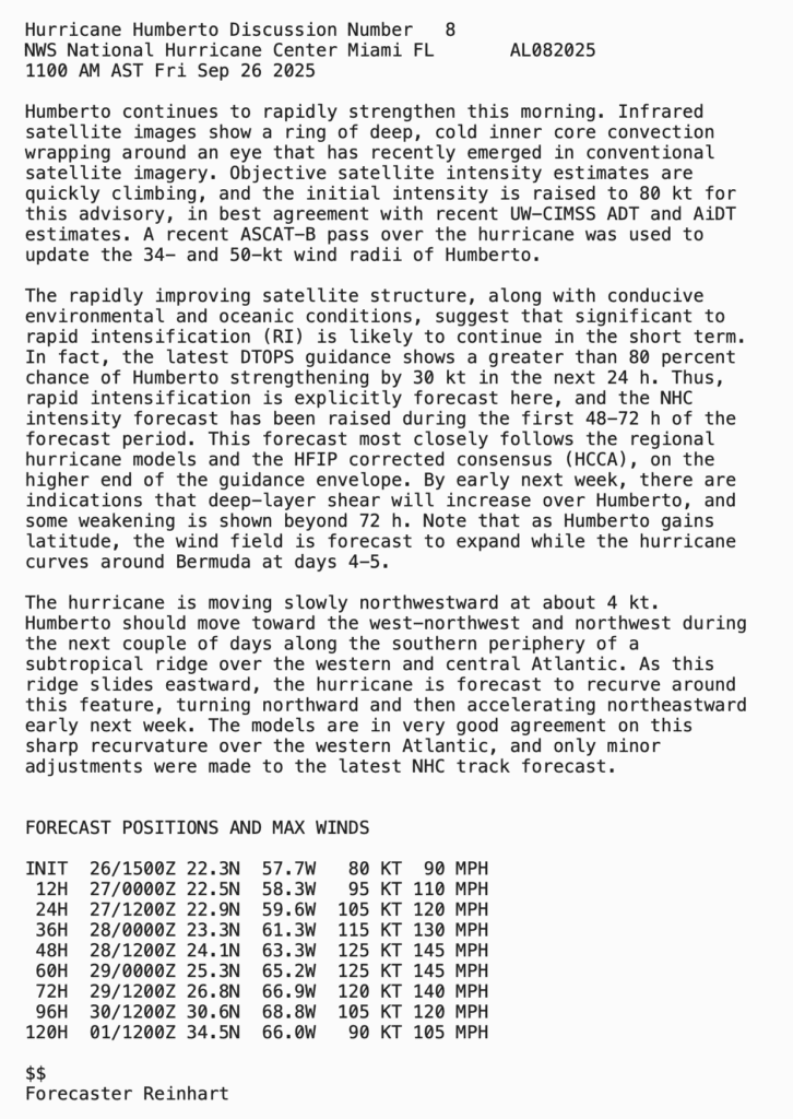 HUMBERTO RAPIDLY STRENGTHENING OVER THE CENTRAL ATLANTIC… …EXPECTED TO BECOME A MAJOR HURRICANE LATER TODAY OR ON SATURDAY