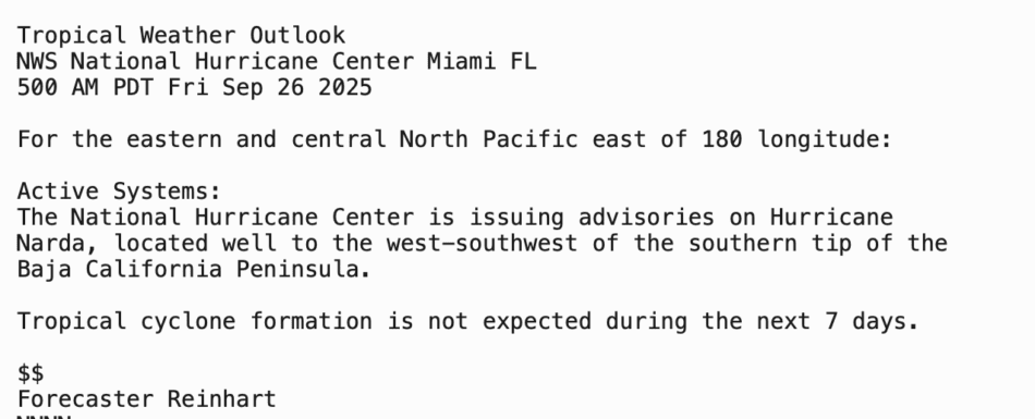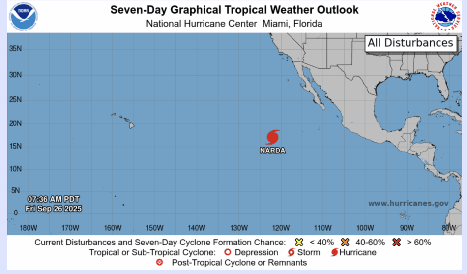 | Tropical Weather Outlook 500 AM PDT Fri 26 Sep 2025 1005 UTC Fri 26 Sep 2025 | |