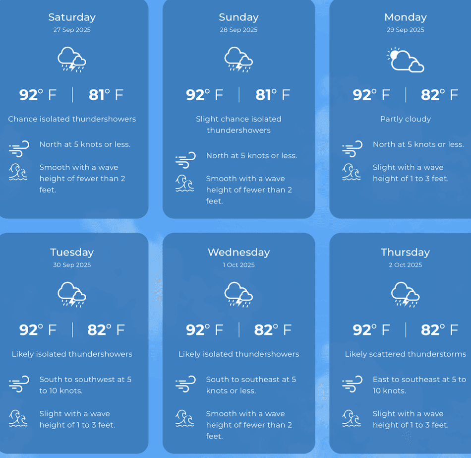 Grand Cayman Sun & Tides Tables September 2025