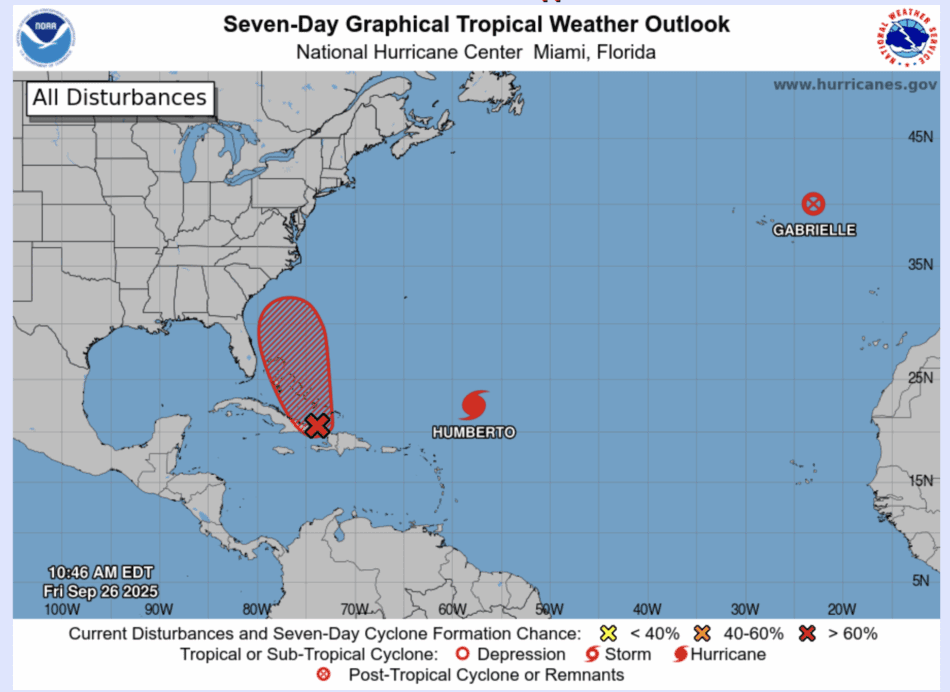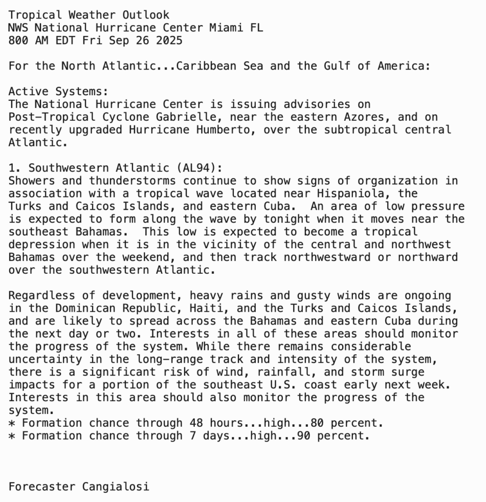 | Tropical Weather Outlook 800 AM EDT Fri 26 Sep 2025 1205 UTC Fri 26 Sep 2025 | |