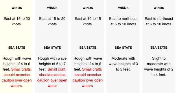 Fresh easterly winds and rough seas are expected across the Cayman area for the next 24 hours as a high pressure system strengthens over the Atlantic Ocean.