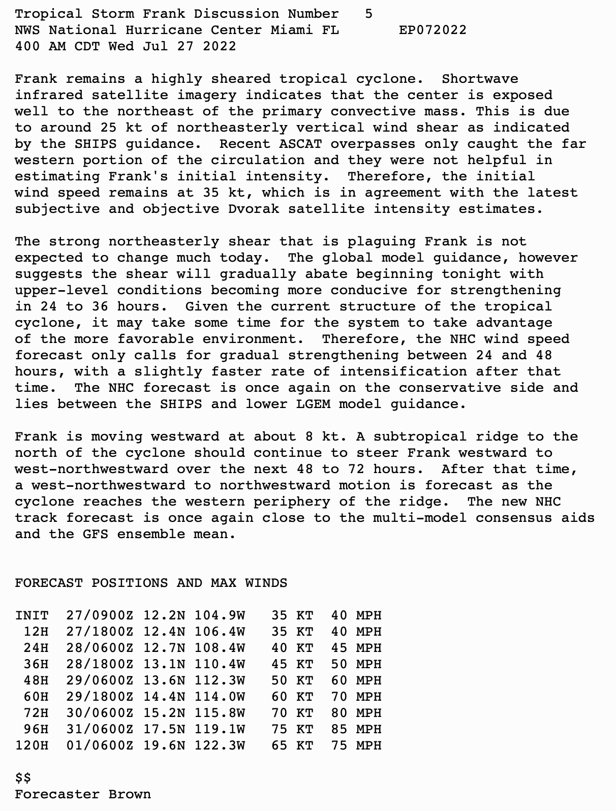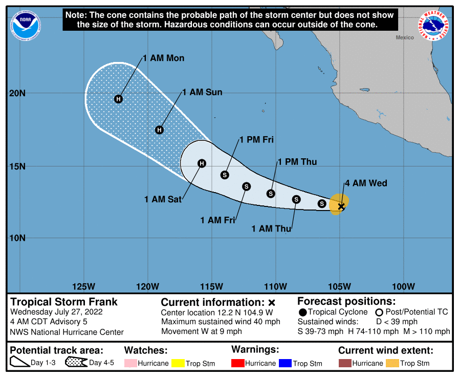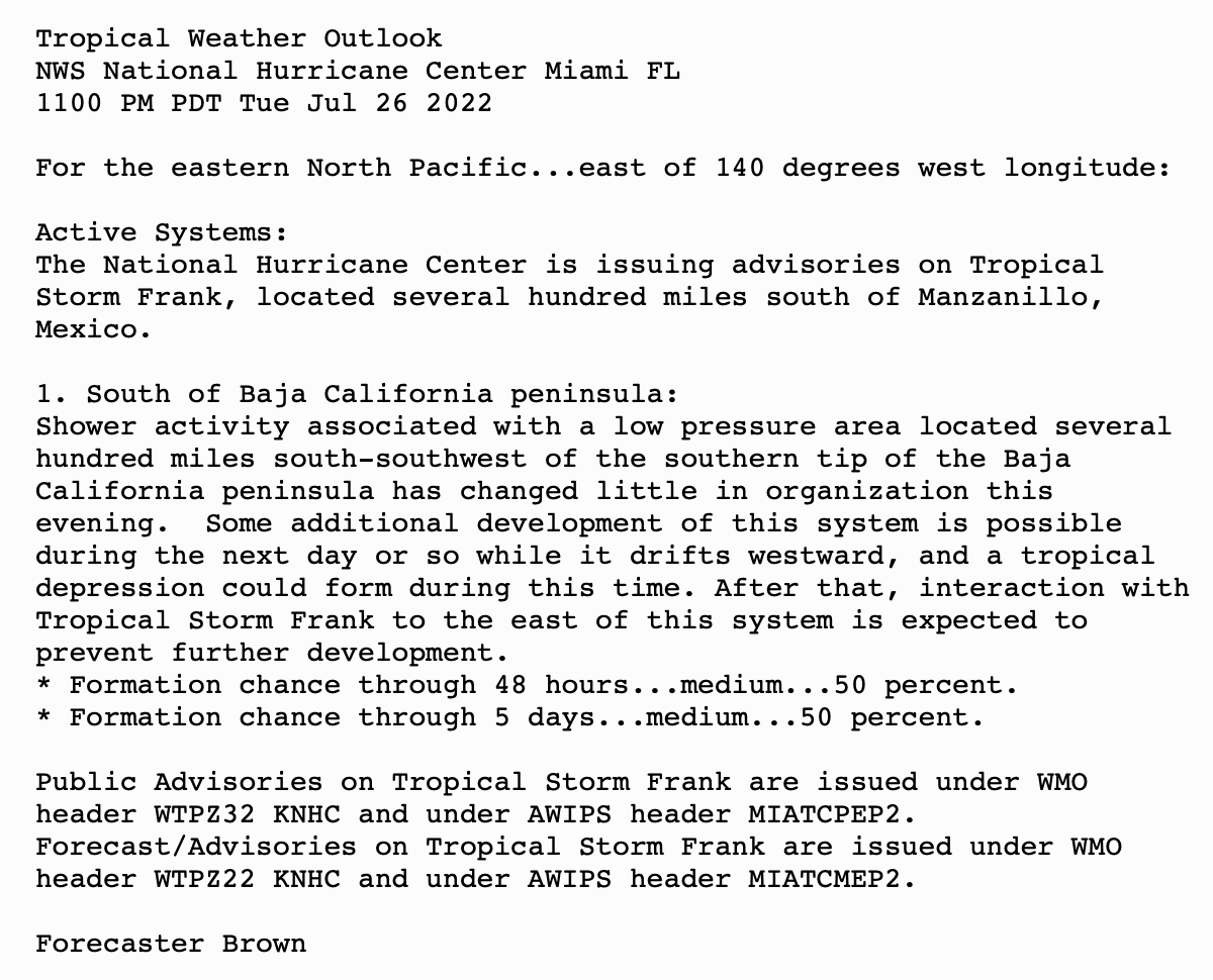 | Tropical Weather Outlook 500 AM PDT Wed July 27 2022 Tropical Weather Discussion 1005 UTC Wed July 27 2022 | |