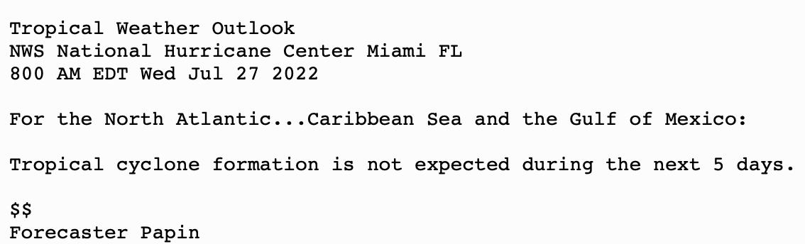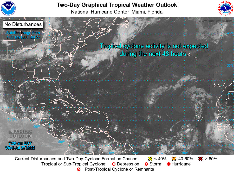 | Tropical Weather Outlook (en Español*) 800 AM EDT Wed July 27 2022 1205 UTC Wed July 27 2022 | |